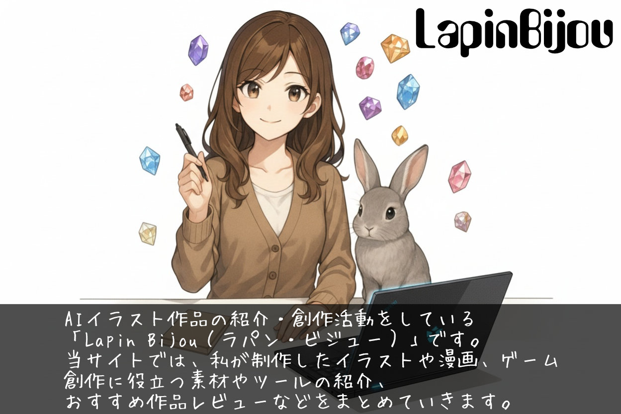 このLapin Bijou(ラパン・ビジュー)では、私が制作したAIイラストや漫画、創作に役立つ素材やツールの紹介、おすすめ作品レビューなどをまとめていきます。